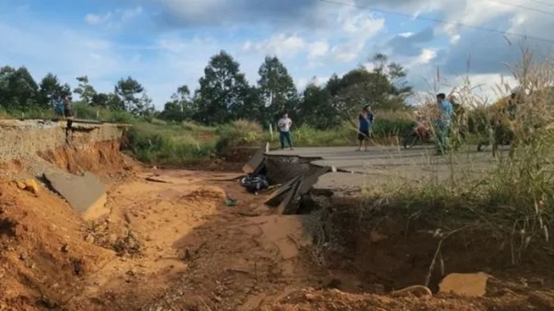 Tình trạng sụt lún khiến nền đường xuất hiện hố sâu gây nguy hiểm. Chính quyền địa phương đã cấm các phương tiện lưu thông qua khu vực, đồng thời rào chắn, đặt biển cảnh báo nguy hiểm ở cả hai chiều.