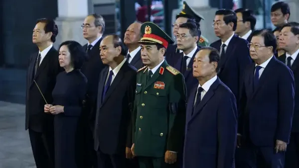 Đoàn Ban Chấp hành Trung ương Đảng do Thường trực Ban Bí thư Trương Thị Mai dẫn đầu vào viếng. Tham gia đoàn có nguyên Chủ tịch nước Nguyễn Xuân Phúc, nguyên Thủ tướng Nguyễn Tấn Dũng...
