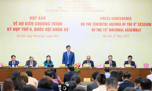 Chiều 4/5, Tổng thư ký Quốc hội, Chủ nhiệm Văn phòng Quốc hội Lê Quang Tùng đã chủ trì họp báo về dự kiến chương trình kỳ họp thứ 9, Quốc hội khóa XV.