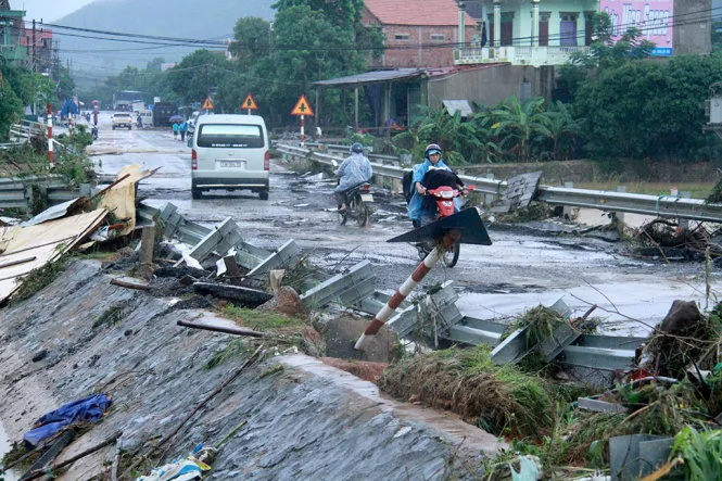 Lũ đã cuốn trôi rất nhiều đoạn đường ở tuyến quốc lộ 12, Quảng Bình. Ảnh: TTO