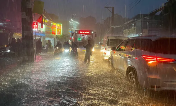 Theo ghi nhận, chiều 5/8, bầu trời tại nhiều quận huyện xuất hiện mây đen dày đặc, không khí chuyển tối sầm, sau đó là mưa lớn kèm theo dông sét, gió giật mạnh. Khu vực trung tâm và các phường lân cận như Thủ Đức, Bình Thạnh, Gò Vấp, Tân Bình…hứng chịu lượng mưa dày, khiến nhiều tuyến đường bị ùn ứ, xe cộ di chuyển khó khăn.