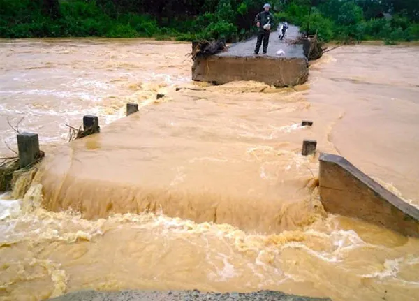 Cầu nối giữa xã Đông Sơn và Hương Lâm (H.A Lưới, Thừa Thiên-Huế) bị nước lũ cuốn trôi.