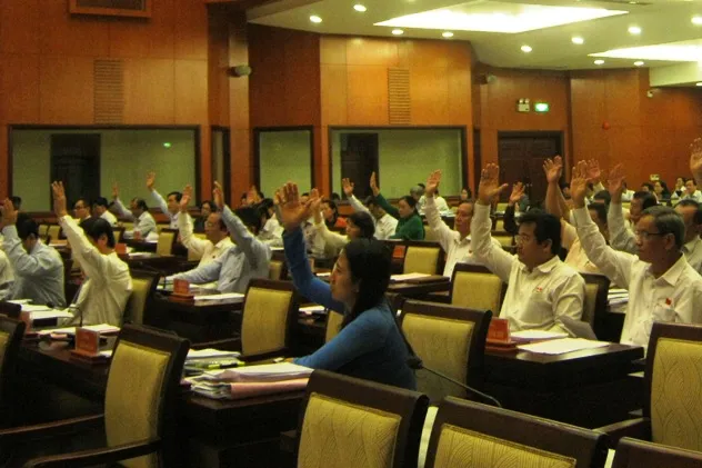 Các đại biểu tán thành 100% thông qua 13 tờ trình của UBND TP tại kỳ họp thứ 20 HĐND TPHCM khóa 8 (Ảnh: LL)