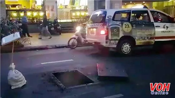 Theo thông tin ban đầu, vào thời gian trên, hố gas trước số nhà 100 đường Nguyễn Du bất ngờ phát ra một tiếng nổ lớn làm nắp hố gas có đường kính hơn 1 mét văng ra khỏi miệng hố trúng vào đuôi xe taxi đang lưu thông trên đường.