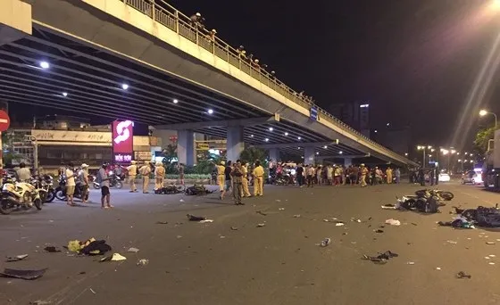 Gần 3 giờ ngày 22-10, Công an quận Bình Thạnh, TPHCM phối hợp cùng các đơn vị liên quan mới hoàn tất việc khám nghiệm, lấy lời khai các nhân chứng, điều tra làm rõ vụ tai nạn giữa xe ô tô hiệu BMW với xe taxi, nhiều xe máy khiến nhiều người thương vong.