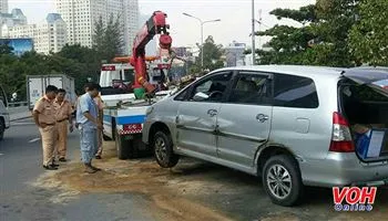 Vụ tai nạn xảy ra vào khoảng 8 giờ sáng ngày 29/9, xe ô tô hiệu Innova 7 chỗ mang BKS: 51F-232.06 do một người đàn ông điều khiển, lưu thông trên cầu Nguyễn Hữu Cảnh theo hướng quận 2 về quận 1.
