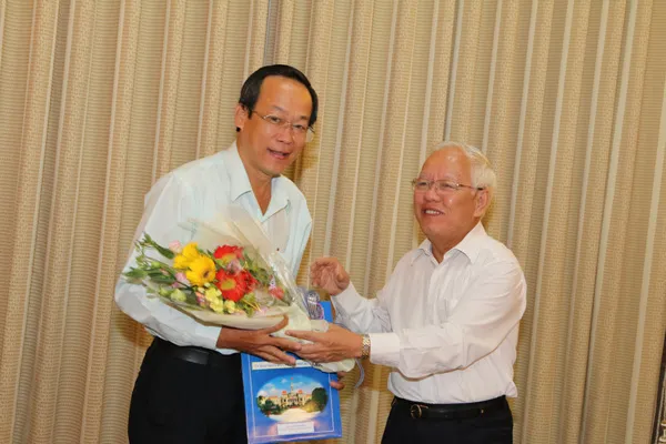 Chủ tịch UBND TPHCM Lê Hoàng Quân trao quyết định bổ nhiệm giữ chức vụ Giám đốc Đài TNND TPHCM cho ông Lê Công Đồng.