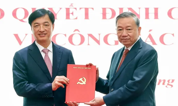 Tổng Bí thư Tô Lâm đã trao Quyết định của Bộ Chính trị cho tân Bí thư Thành ủy Hà Nội Nguyễn Duy Ngọc.