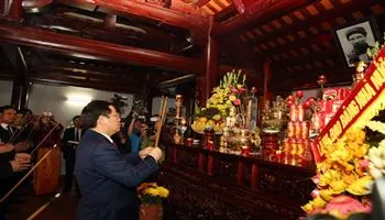 Phó Thủ tướng Vương Đình Huệ thắp hương trước bàn thờ Cụ Phan Bội Châu.