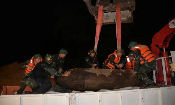 Tối 18/9, lực lượng công binh của Bộ Tư lệnh Thủ đô Hà Nội và các đơn vị liên quan trục vớt và xử lý an toàn 2 quả bom tấn còn sót lại sau chiến tranh, được người dân phát hiện tại khu vực bãi giữa sông Hồng, gần cầu Long Biên.
