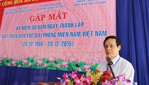 Phó Chủ tịch UBTƯ MTTQ Việt Nam Lê Bá Trình đọc diễn văn kỷ niệm 55 năm Ngày thành lập MTDTGPMN Việt Nam - Ảnh: ĐĐK.
