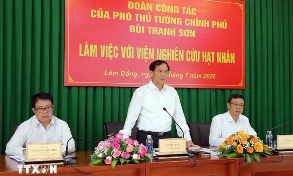 Sáng 25/7, Phó thủ tướng Bùi Thanh Sơn đã đến làm việc tại Viện Nghiên cứu hạt nhân Đà Lạt (thuộc Viện Năng lượng nguyên tử Việt Nam) đóng tại Lâm Đồng, kiểm tra hoạt động thực tế tại Lò phản ứng hạt nhân Đà Lạt, công tác vận hành, khai thác, nghiên cứu, ứng dụng... của Viện.