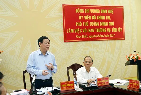 Đồng chí Vương Đình Huệ bày tỏ đánh giá cao cách làm của Bình Thuận trong công tác quy hoạch, luân chuyển cán bộ thời gian qua, đồng thời lưu ý các thành viên trong Đoàn và tỉnh Bình Thuận rà soát, kiểm tra công tác luân chuyển, bổ nhiệm cán bộ bảo đảm chất lượng, năng lực; nghiên cứu các hình thức luân chuyển linh hoạt giữa các cấp, khối, ngành trên địa bàn; việc thực hiện các nguyên tắc tập trung dân chủ, công khai, minh bạch, quy chế dân chủ cơ sở…
