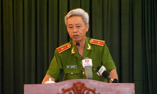 Phó giám đốc công an TPHCM thiếu tướng Phan Văn Minh báo cáo sơ bộ về tình hình chống tham nhũng của lực lượng công an tại hội nghị - Ảnh: TTO