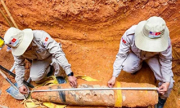 Điều đáng nói là quả bom nằm sát mép sông Sê Pôn và chỉ cách cột mốc biên giới chưa đầy 70m, tiềm ẩn nguy cơ cực kỳ lớn đối với an toàn của người dân và các công trình quốc gia.