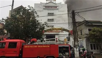Khoảng 6h sáng cùng ngày (25/3), cột khói lớn bốc lên nghi ngút từ tầng 3 – 4 của quán karaoke Kingdom Club (nằm trên đường Trần Phú, thuộc thôn Tân Trung, xã Thạch Trung, TP. Hà Tĩnh).