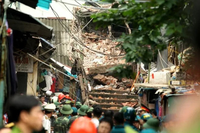 Tòa nhà bị sập nằm trong khuôn viên Ban quản lý dự án đường sắt khu vực 1 thuộc Đường sắt Việt Nam tại đường Trần Hưng Đạo (Q.Hoàn Kiếm).