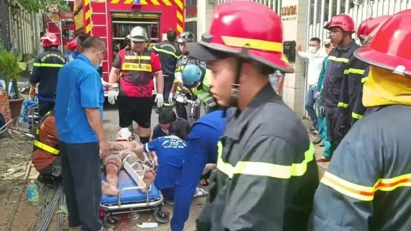 Nhận được tin báo, lực lượng cảnh sát PCCC&CNCH Công an quận Bình Thạnh và các đơn vị nhanh chóng có mặt triển khai lực lượng, thực hiện công tác cứu hộ.