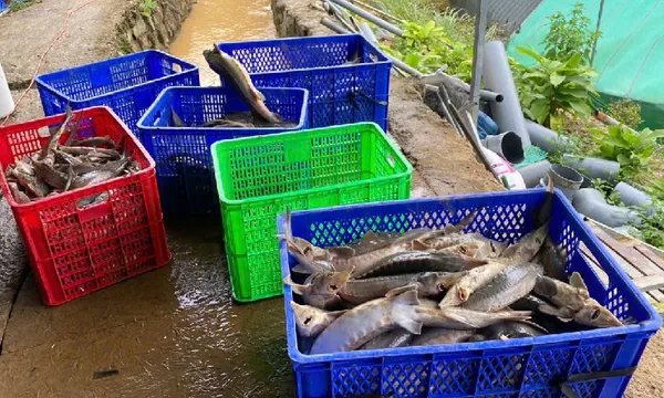Theo ông Hòa, mưa lớn kéo dài đã khiến quả đồi đầu nguồn ở thôn Lê Ngọc (xã Ngọc Linh) bị sạt lở, cuốn gãy 3 trụ điện. Dù điểm sạt lở cách khu nuôi cá khoảng 3 km, nhưng lượng đất đá và nước đỏ tràn xuống suối rồi đổ vào khu vực 10 hồ nuôi cá tầm của Hợp tác xã Thủy sản Ngọc Linh, khiến cá chết hàng loạt.