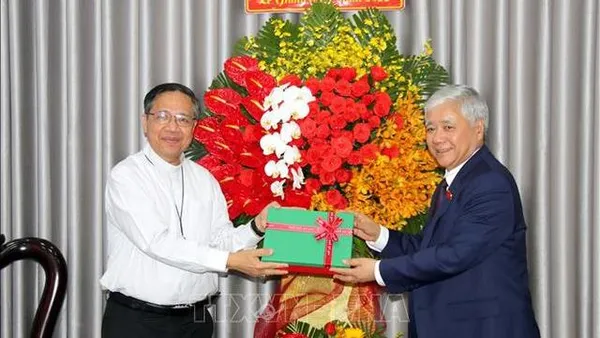 Chủ tịch UBTWMTTQVN Đỗ Văn Chiến chúc mừng Giáng sinh Giám mục Đỗ Mạnh Hùng và cộng đồng Công giáo Phan Thiết.