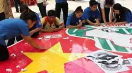 Đoàn viên thanh niên TPHCM làm huy hiệu kỷ lục (Ảnh: Petrotimes) |