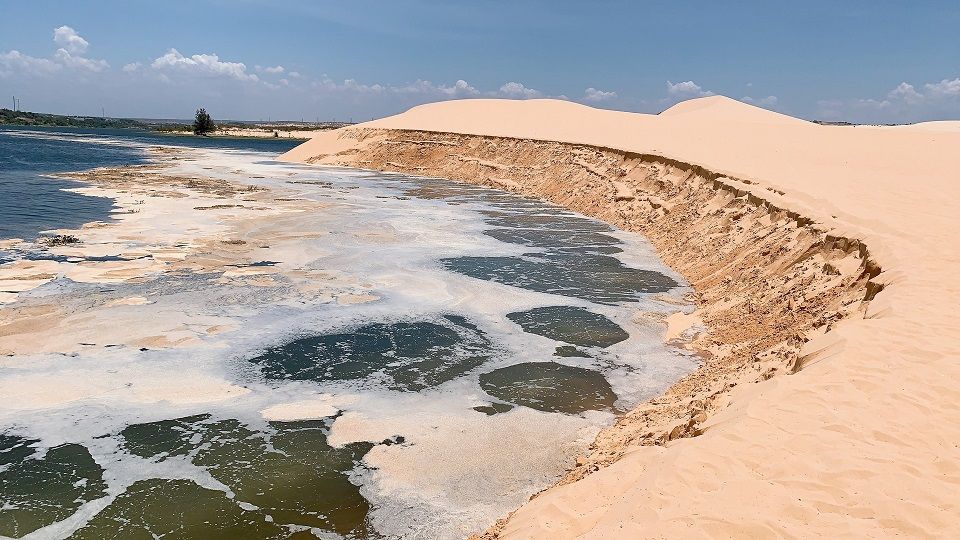 Ban quản lý Điểm du lịch Bàu Trắng (huyện Bắc Bình) thông tin, sáng nay (3/5), tại vị trí cuối đuôi Bàu Bà về hướng Đông Nam, đoạn tiếp giáp giữa bờ hồ Bàu Bà và chân đồi cát xảy ra sạt lở, chiều dài khoảng 70 - 80m, chiều ngang nước lấn vào đồi cát khoảng 25m.