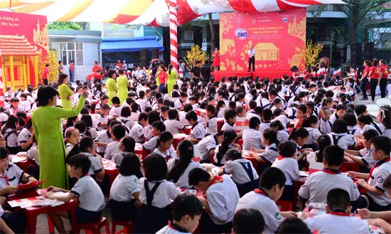 Lễ phát động chương trình “OMO - Hộp quà sum họp” tại trường tiểu học Nguyễn Văn Trỗi, quận 4, TP.HCM.