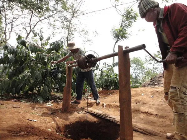 Người dân tại Đắk Lắk đào giếng sâu hơn 60 m để lấy nước tưới cho cà phê. Ảnh: Zing