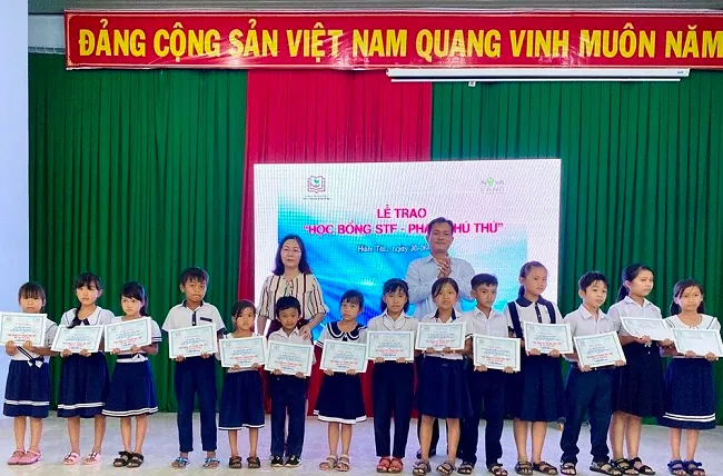 Hòa chung niềm vui trong ngày lễ bàn giao, thông qua Quỹ học bổng STF Phạm Phú Thứ, Tập đoàn Novaland cũng trao tặng 200 trăm suất học bổng đến các em học sinh hiếu học hoàn cảnh khó khăn tại các trường học trên địa bàn huyện Bắc Bình và huyện Hàm Tân (Bình Thuận).