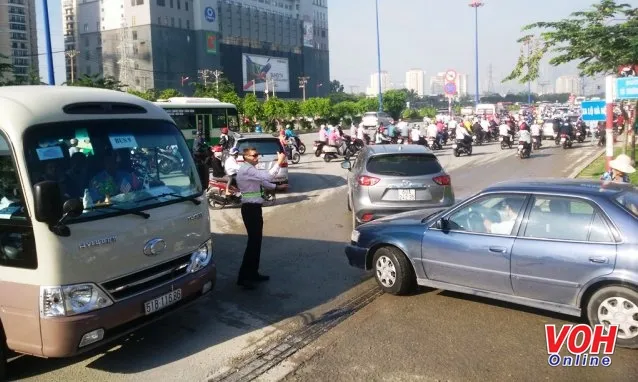 Khoảng 7h00 sáng nay 26/9, tại nút giao Xa lộ Hà Nội – Võ Trường Toản (Q.2) nhiều người đi đường bắt gặp một hình ảnh rất đáng chú ý. Một ông Tây tay không đứng ra điều tiết giao thông bất chấp nguy hiểm, tiết trời nắng nóng.