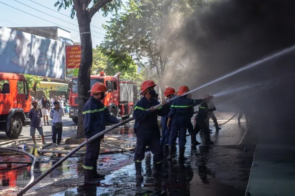 Hiện trường vụ cháy tại Mỹ Tho, Tiền Giang. Ảnh: Bùi Gia Phú.