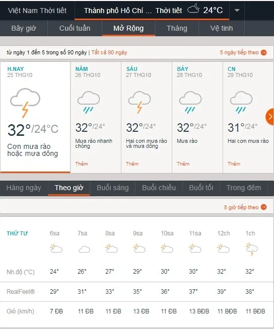 Dự báo thời tiết sáng nay tại TPHCM của Accuweather (Ảnh chụp màn hình)