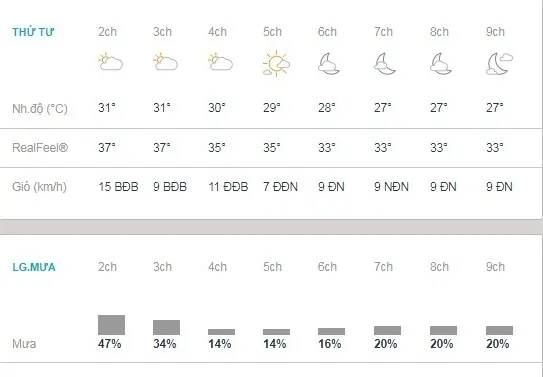 Riêng miền Đông Nam Bộ, theo Trung tâm Dự báo Khí tượng Thủy văn Trung ương, hôm nay trời có mây thay đổi, mưa rào và dông vài nơi; riêng chiều tối có mưa rào và rải rác có dông. Gió nhẹ. Trong cơn dông có khả năng xảy ra tố, lốc và gió giật mạnh.