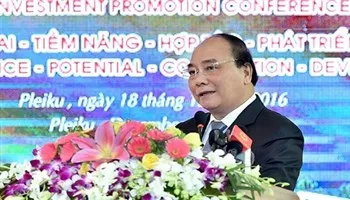 Thủ tướng Nguyễn Xuân Phúc dự hội nghị xúc tiến đầu tư vào tỉnh Gia Lai năm 2016.