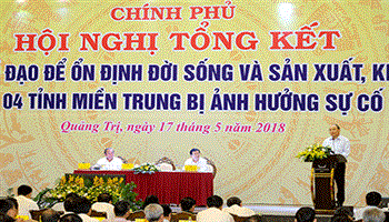 Sáng ngày 17/5 tại TP. Đông Hà, Quảng Trị, Thủ tướng Nguyễn Xuân Phúc, Phó Thủ tướng Thường trực Chính phủ Trương Hòa Bình, Phó Thủ tướng Trịnh Đình Dũng cùng chủ trì Hội nghị tổng kết hoạt động của Ban Chỉ đạo về các giải pháp để ổn định đời sống và sản xuất, kinh doanh cho nhân dân 4 tỉnh miền Trung sau sự cố môi trường biển.