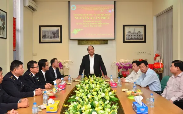 Thủ tướng Nguyễn Xuân Phúc chúc tết chi cục Hải quan sân bay Tân Sơn Nhất.