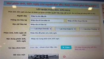 Ảnh chụp màn hình trang tiếp nhận thông tin của Văn phòng Chính phủ