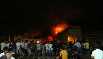 Lửa cháy dữ dội ở tòa nhà còn lại của công ty Kwong Lung - Meko. Ảnh: TTXVN.