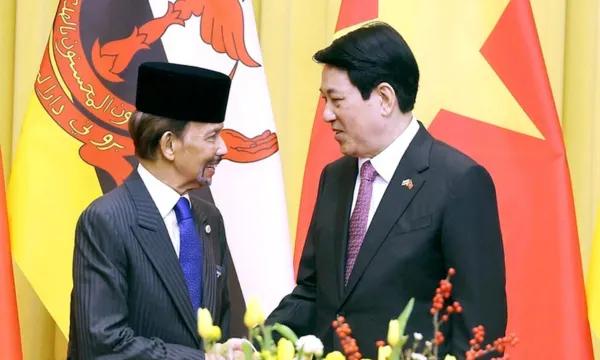 Chủ tịch nước Lương Cường và Quốc vương Brunei Haji Hassanal Bolkiah khẳng định quan hệ kinh tế giữa hai nước còn nhiều tiềm năng và dư địa.