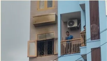 Công an khám hiện khu vực tầng 4 căn nhà nơi phát ra tiếng nổ - Ảnh: VNN