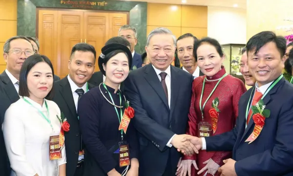 Tại buổi gặp mặt, Tổng Bí thư Tô Lâm chúc mừng toàn thể cán bộ, hội viên Hội Nông dân Việt Nam nhân kỷ niệm 95 năm Ngày thành lập Hội và chúc mừng, khen ngợi 95 nông dân xuất sắc và nhà khoa học của nhà nông năm 2025.