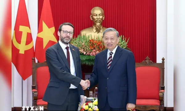 Tại cuộc tiếp, Tổng Bí thư Tô Lâm bày tỏ vui mừng về những bước phát triển tốt đẹp của quan hệ song phương trong thời gian vừa qua; khẳng định quan hệ song phương đã phát triển thực chất và hiệu quả trên tất cả các lĩnh vực, tương xứng với tầm mức quan hệ Đối tác Chiến lược Việt Nam - Anh; đánh giá cao vai trò của Đại sứ, góp phần quan trọng vào các thành tựu hợp tác song phương.