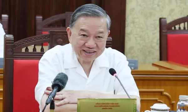 Tổng Bí thư Tô Lâm phát biểu, yêu cầu, thời gian tới, Ban Bí thư đề nghị Đảng ủy Quốc hội, Đảng ủy Chính phủ, Đảng ủy Mặt trận Tổ quốc, các đoàn thể Trung ương, Ban Tuyên giáo và Dân vận Trung ương, các cơ quan theo chức năng, nhiệm vụ được giao tiếp tục lãnh đạo, chỉ đạo chặt chẽ các công việc.