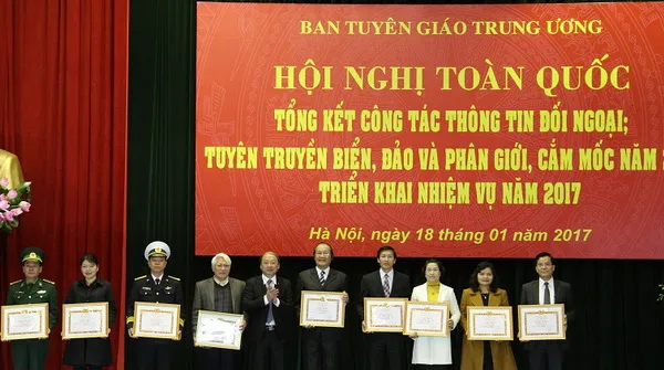 Dịp này, Ban Tuyên giáo Trung ương đã trao Bằng khen và thưởng cho 27 tập thể, 9 cá nhân có thành tích xuất sắc trong công tác thông tin đối ngoại, tuyên truyền biển đảo và phân giới cắm mốc năm 2016.