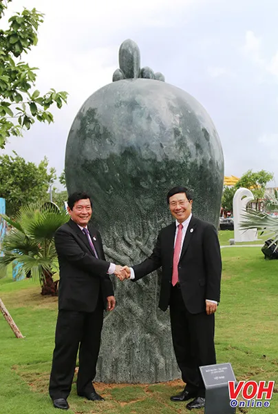 PTT Phạm Bình Minh bên bức tượng KHỞI NGUYÊN của chủ nhà Việt Nam