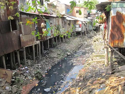 Rạch Bùi Hữu Nghĩa bị ô nhiễm nặng do bồi lấp - Ảnh: NLĐ.