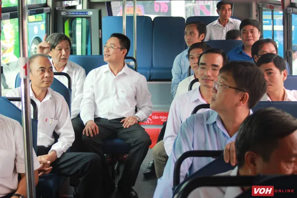 Lãnh đạo Sở cùng đại diện các ban, ngành cùng trải nghiệm trên xe mới (Ảnh: Thanh Hương)
