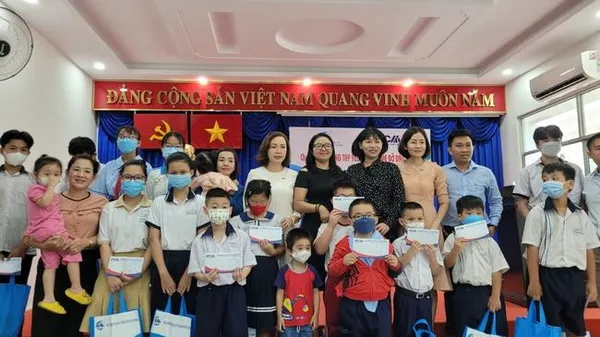 Sáng nay 18/5, chương trình “Vòng tay yêu thương – Mẹ đỡ đầu” do Hội Liên hiệp Phụ nữ TPHCM phối hợp với Hội Tư vấn và đại lý thuế TPHCM tổ chức và trao 23 sổ tiết kiệm cho 23 trẻ em mồ côi có hoàn cảnh khó khăn do dịch Covid-19 trên địa bàn quận 5 và quận Bình Tân với tổng kinh phí 230 triệu đồng.