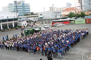 | Tình nguyện viên TP.HCM tập kết tại Cảng Sài Gòn chuẩn bị đón các thành viên SSEAYP 2011 (tháng 12/2011). (ảnh: PNO) |