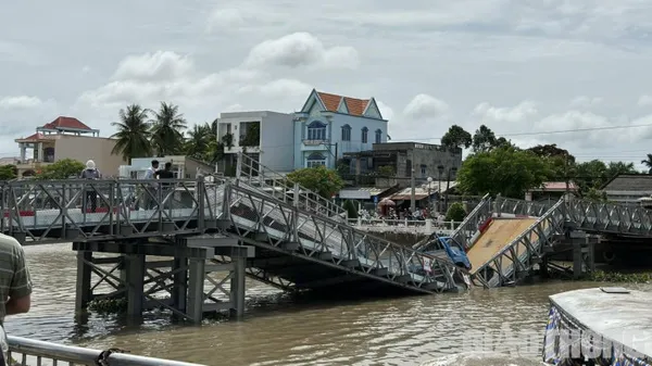 Lực lượng chức năng thành phố Trà Vinh, tỉnh Trà Vinh đang xử lý việc cầu tạm Long Bình 1 thử tải thì bị sập vào khoảng 9h sáng nay 16/7. Cầu tạm này được xây dựng để người dân lưu thông trong thời gian chờ thi công cầu Long Bình 1.